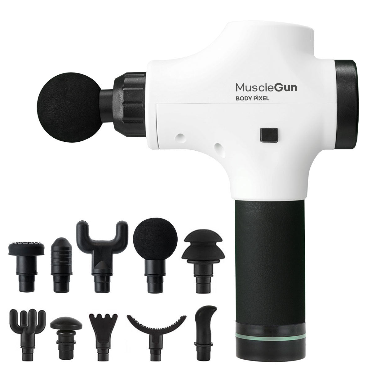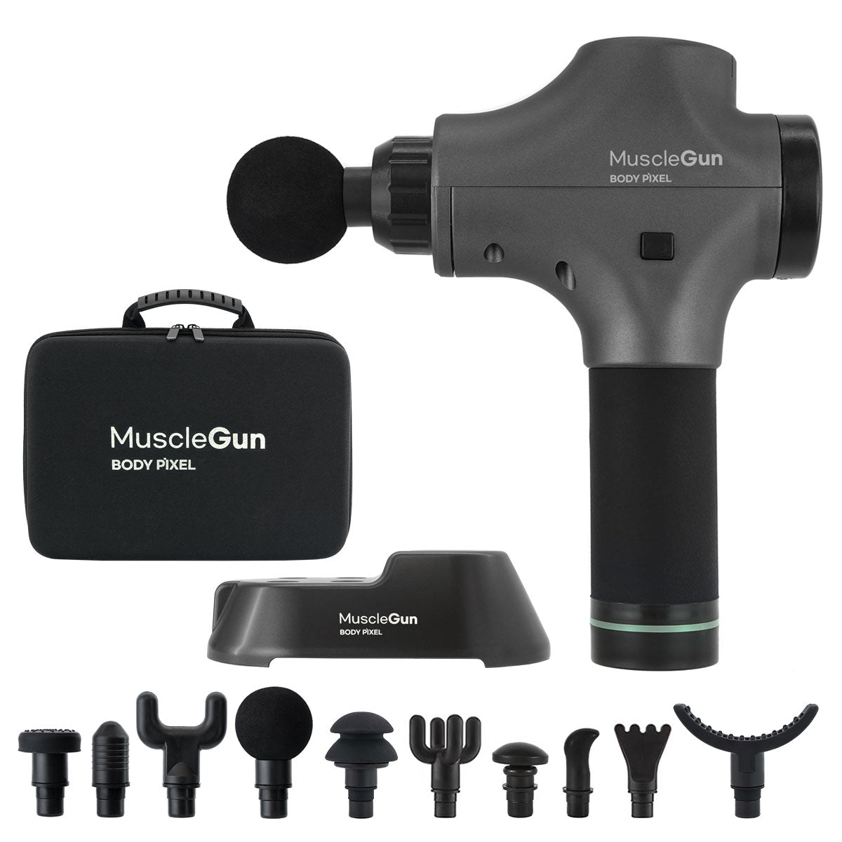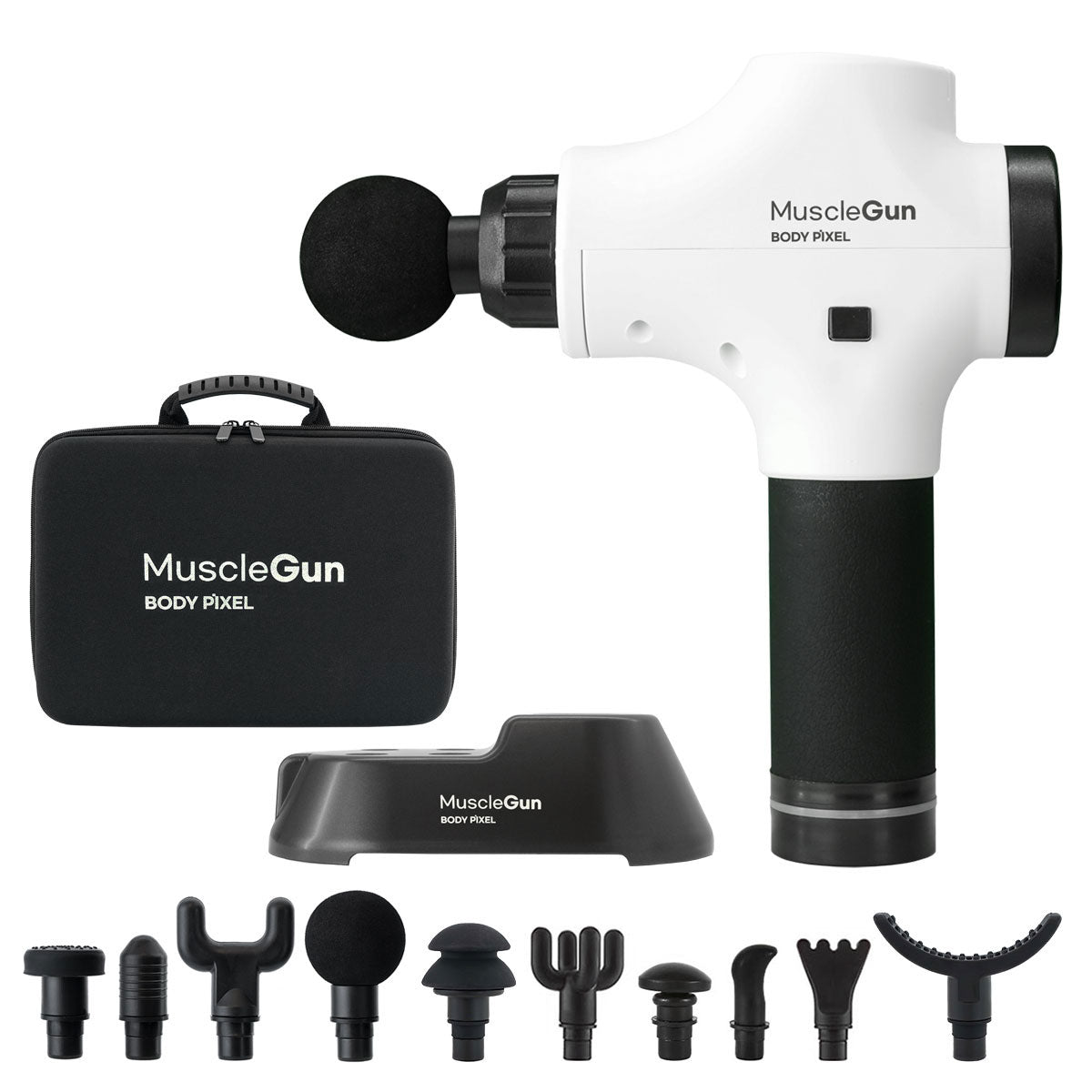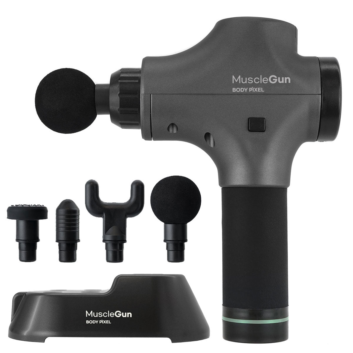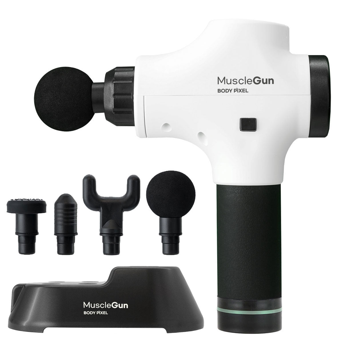 BODYPIXEL ボディピクセル マッスルガンで、いつでもどこでも手軽に筋膜リリースのマッサージが可能です。筋膜リリースとは、筋肉と筋膜の状態を改善するためのストレッチ方法で、筋膜をさまざまな方向に解きほぐしていくことで、体を元のパフォーマンスに戻します。BODYPIXEL ボディピクセル マッスルガンで、筋膜のよじれやねじれを解消して、正しい筋と筋膜の伸長性と筋肉の動きの回復を促しましょう。心までほぐれる秘密は類を見ないパワーにあります。このマッサージガンは1分間に最大3300回のパワフル振動が、普段動かさない筋肉の奥深くまで届きます。運動後のクールダウンにも最適で、酷使した腕や脚に軽く押し当てることで、体も気分もリフレッシュできます。パワフルさを維持しつつも本体が約840gなので片手で使えてリラックスにピッタリです。